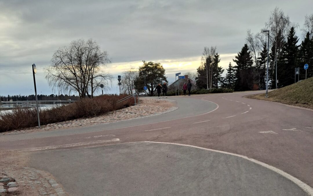 Minä ja muut allekirjoittaneet vaadimme toimia jalankulun turvallisuuden parantamiseksi kyseiseen kohtaan. Vähintään baanan ylittävä suojatie tulee maalata uudestaan sekä lisätä suojatiestä ja väistämissäännöistä muistuttavat liikennemerkit pyöräilijöille. Lisäksi alueen valaistusta voidaan parantaa ja miettiä suojatien pinta-alan laajentamista kävelijöiden luonnollisen kulkemisreitin kohdalle (kts. Kuva 1). Myös muut liikenneturvallisuutta lisäävät toimet ovat kannatettavia.
